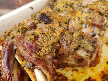 We marinate your lamb leg in a mustard seed and sundried tomato base sauce and seasoned with various Greek herbs. A marination that takes your slow cooked lamb roast to another level.