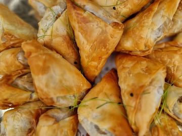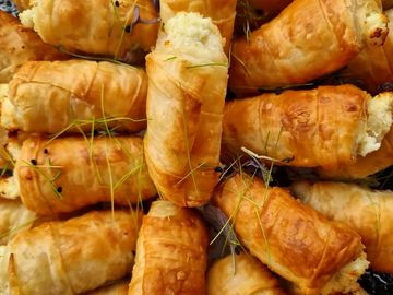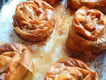 Crispy filo pastry filled with almond nuts and cinnamon syrup